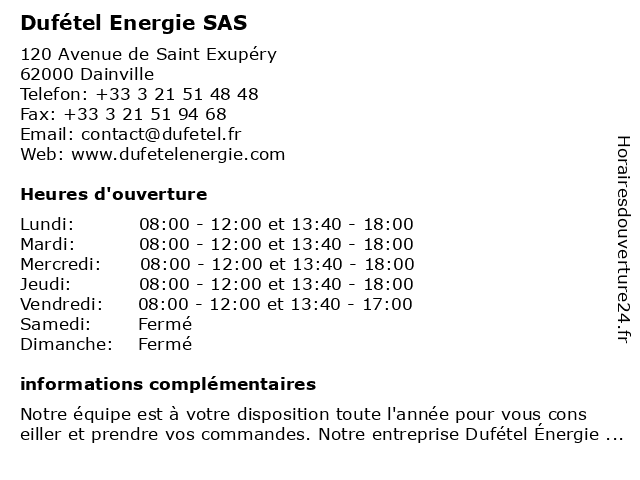 | Mercredi | 08:00-12:00 et 13:40-18:00 |