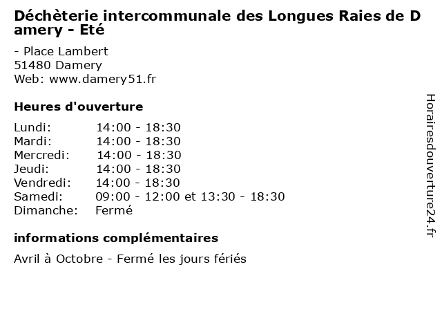 | Samedi | 09:00-12:00 et 13:30-18:30 |