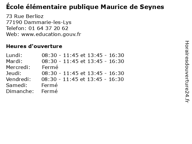 | Mardi | 08:30-11:45 et 13:45-16:30 |