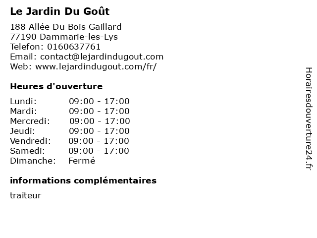 | Samedi | 09:00-17:00 |