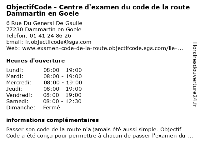 1 Code'nGO - Centre d’Examen (Distance: 0,46 km) 130 avenue du Général de Gaulle, 77230 Dammartin-en-Goële centre, code, code'ngo, d’examen, examens, permis 2 ObjectifCode - Centre d'examen du code de la route Montge en Goele (Distance: 6,15 km) 11 Rue De La Loi, 77230 Montge en Goele centre, code, d'examen, de, du, en, goele, la, montge, objectifcode, route 3 ObjectifCode - Centre d'examen du code de la route Marchemoret (Distance: 7,33 km) 26 Grande Rue, 77230 Marchemoret centre, code, d'examen, de, du, la, marchemoret, objectifcode, route 4 Centre d’examen du code de la route - DEKRA (Distance: 8,99 km) 16 Rue des Frères Lumières, 77290 MITRY MORY centre, code, cours, de, dekra, du, d’examen, examens, formation, la, permis, route 5 Centre d’examen du code de la route - DEKRA (Distance: 11,16 km) 6 Rue Ernest Sarron, 77410 CLAYE-SOUILLY centre, code, cours, de, dekra, du, d’examen, examens, formation, la, permis, route 6 La Poste - Centre d’examen du code de la route (Distance: 12,18 km) 2 Rue Du 8 Mai 1945, 95380 Louvres centre, centre d'évaluation scolaire, code, de, du, d’examen, la, poste, route, école technique |