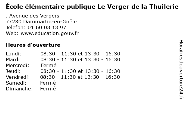 | Mardi | 08:30-11:30 et 13:30-16:30 |