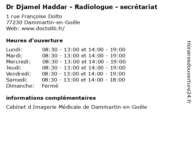 | Mardi | 08:30-13:00 et 14:00-19:00 |