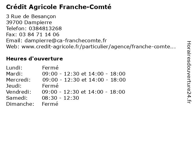 1 Crédit Agricole Franche-Comté (Distance: 5,83 km) 33 C Rue Charles de Gaulle, 25410 Saint-Vit agence, agricole, assurance, bancaire, banque, comté, credit, crédit, franche 2 Crédit Agricole Franche-Comté (Distance: 12,25 km) 6 Grande Rue, 25440 Quingey agence, agricole, assurance, bancaire, banque, comté, crédit, franche 3 Crédit Agricole Franche-Comté (Distance: 15,00 km) 34 Avenue de Marnay La Ville, 70150 Marnay agricole, ca, comté, crédit, crédit agricole, franche 4 Crédit Agricole Franche-Comté (Distance: 17,85 km) - centre commercial Super U, 25115 Pouilley-les-Vignes agricole, banque, comté, credit, crédit, epargne, franche, pret, retrait 5 Crédit Agricole Franche-Comté (Distance: 19,33 km) - Place le la Mairie, 70140 Pesmes agricole, banque, comté, credit, crédit, epargne, franche, pret, retrait 6 Crédit Agricole Franche-Comté (Distance: 19,72 km) 4 Rue de Besançon, 39100 Dole agence, agricole, assurance, bancaire, banque, comté, crédit, franche |