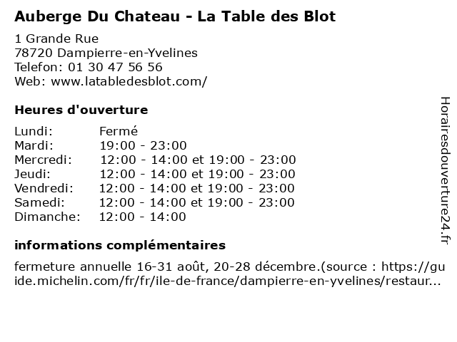 1 Les Ecuries Du Chateau (Distance: 0,19 km) Chateau De Dampierre, 78720 Dampierre En Yvelines chateau, ecuries, restaurants 2 Boulangerie du Chateau (Distance: 4,22 km) 38 Rue de la division leclerc, 78460 Chevreuse boulangerie, chateau, chevreuse, du 3 AUBERGE DU BOUT DES PRES (Distance: 4,32 km) D149, 78720 Cernay-la-ville auberge, bout, des, du, pres 5 Auberge de la Chapelle (Distance: 5,08 km) 6 Route De Romainville, 78470 Milon-la-Chapelle auberge, bar, café, chapelle, de, la, lottaria, restaurants 6 Dumuids Chateau (Distance: 6,18 km) 11 Avenue du Général Leclerc, 78470 Saint-Rémy-lès-Chevreuse chateau, dumuids |