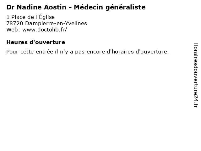 1 Dr Nadine Aoustin - Médecin généraliste (Distance: 0,00 km) 1 Place de l'Église, 78720 Dampierre-en-Yvelines aoustin, docteur, dr, generaliste, généraliste, medical, médecin, nadine, soin 2 Nadine Meroux - Réflexologue (Distance: 6,47 km) 22 Rue de Mauregard, 78690 Les Essarts-le-Roi massage, meroux, nadine, plantaire, reflexologue, réflexologue, therapeute 3 Nadine Cherarad - Sage-femme (Distance: 13,10 km) 5-7 rue Pierre et Marie Curie, 78120 Rambouillet cherarad, consultation, docteur, dr, femme, med, médecin, nadine, sage, traitement 4 Nadine Chaligné - Psychologue (Distance: 13,59 km) 5 bis Rue de Limours, 91470 Angervilliers chaligné, folie, nadine, psychiatre, psychiatrie, psychiatrique, psychologue 5 Dr Nadine Coing - Médecin généraliste (Distance: 14,13 km) 2 Rue de Paris, 91400 Saclay coing, docteur, dr, generaliste, généraliste, medical, médecin, nadine, soin 6 Dr.Nadine Merville - Pédiatre (Distance: 15,12 km) 2 rue de Marly, 78150 Le Chesnay consultation, docteur, dr.nadine, merville, pédiatre, pédiatrie, santé |