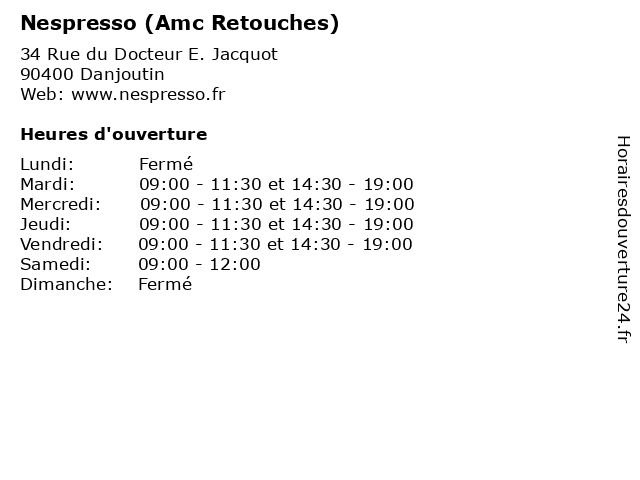 | Mardi | 09:00-11:30 et 14:30-19:00 |
