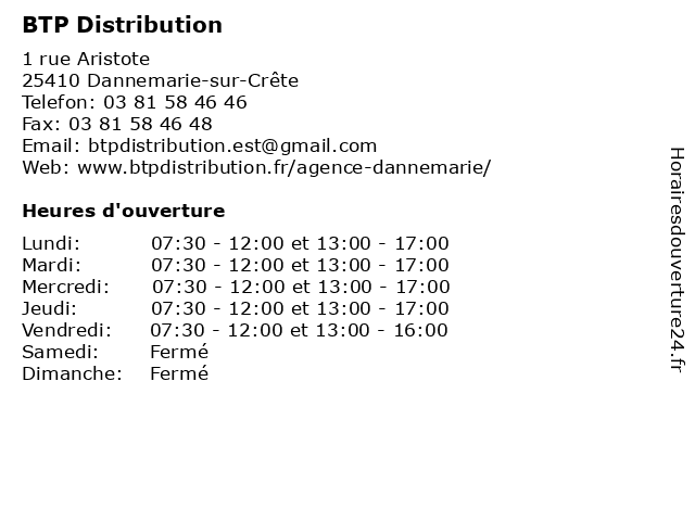 | Lundi | 07:30-12:00 et 13:00-17:00 |