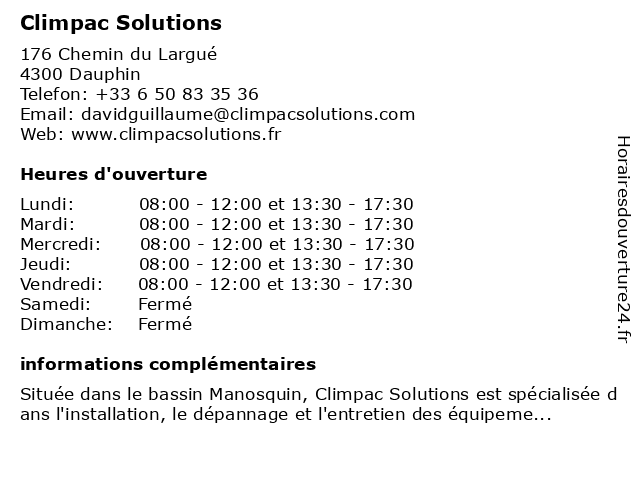 Lundi | 08:00-12:00 et 13:30-17:30 |