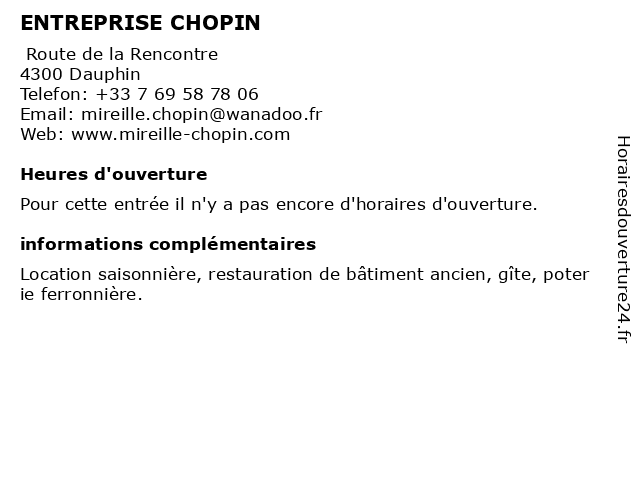 | Appeler ENTREPRISE CHOPIN | |