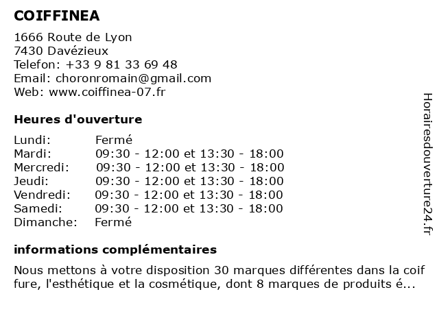 | Horaires d'ouverture | ||