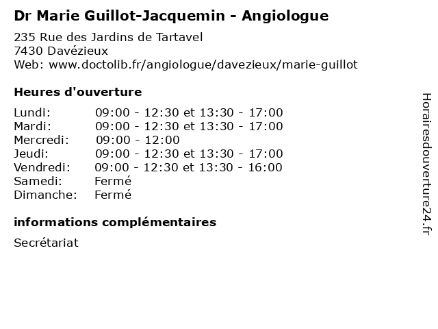 | Lundi | 09:00-12:30 et 13:30-17:00 |