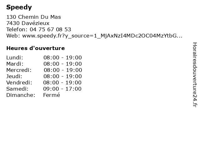| Lundi | 08:00-19:00 |