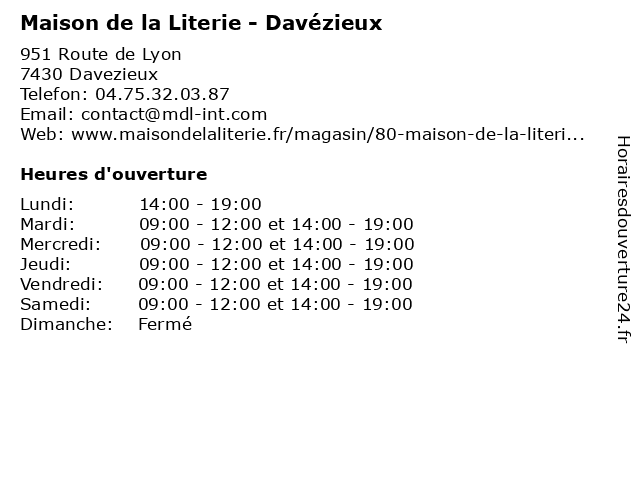 | Samedi | 09:00-12:00 et 14:00-19:00 |