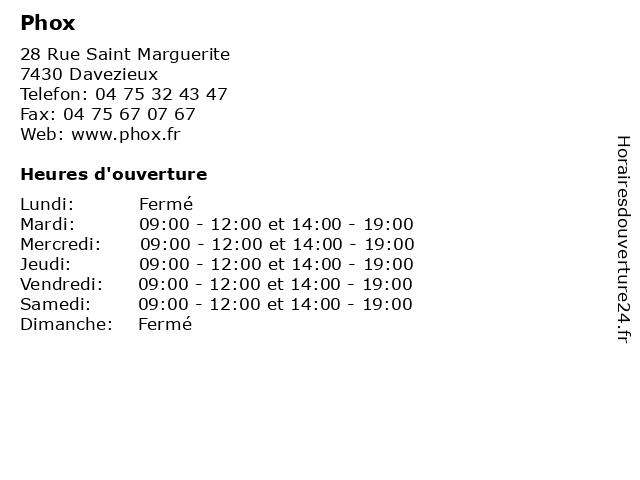 | Samedi | 09:00-12:00 et 14:00-19:00 |