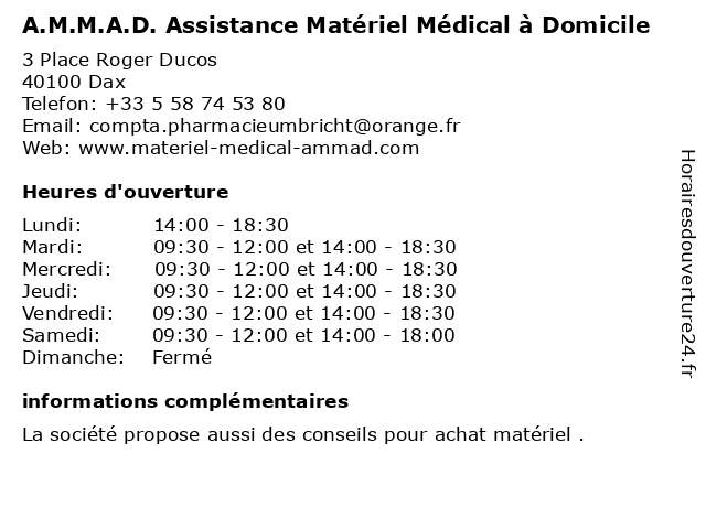 Termes de recherche pour A.M.M.A.D. Assistance Matériel Médical à Domicile:medical, domicile, matériel, assistance, a.m.m.a.d. |