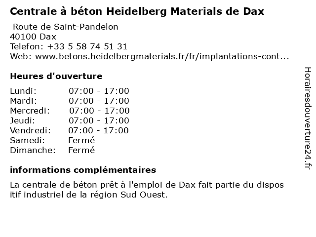 Termes de recherche pour Centrale à béton Heidelberg Materials de Dax:de, dax, centrale, materials, beton, heidelberg |