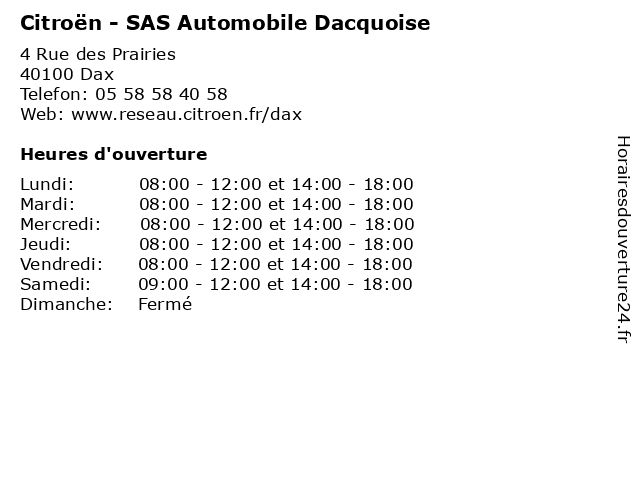 | Mardi | 08:00-12:00 et 14:00-18:00 |