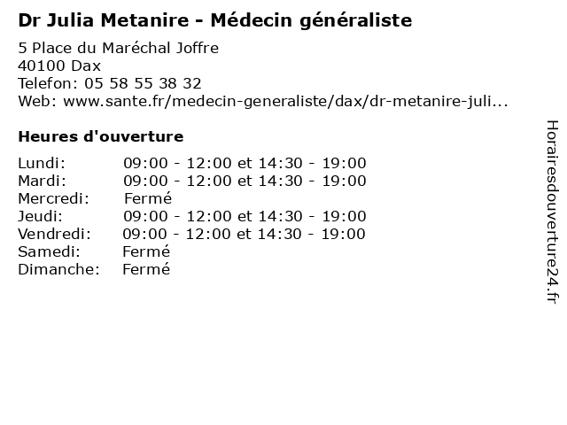 | Lundi | 09:00-12:00 et 14:30-19:00 |