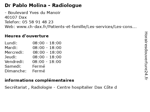 1 Maître Yolanda Molina-Ugarte - Avocate (Distance: 42,63 km) 38 rue Jules Labat, 64100 Bayonne avocate, avocats, civils, droits, juridiques, maître, molina, ugarte, yolanda 2 Dr Pablo Molina - Radiologue (Distance: 43,42 km) 13 avenue de l'Interne Jacques Loëb, 64100 Bayonne consultation, docteur, dr, med, molina, médecin, médecine, pablo, radiologue, traitement 3 Dr Bernadette Cabot-Cazeaux - Radiologue (Distance: 0,00 km) - Boulevard Yves du Manoir, 40107 Dax bernadette, cabot, cazeaux, consultation, docteur, dr, med, médecin, médecine, radiologue, traitement 4 Dr Julien Jacquin - Radiologue (Distance: 0,00 km) - Boulevard Yves du Manoir, 40107 Dax consultation, docteur, dr, jacquin, julien, med, médecin, médecine, radiologue, traitement 5 Dr Jean Maze - Radiologue (Distance: 0,00 km) - Boulevard Yves du Manoir, 40107 Dax consultation, docteur, dr, jean, maze, med, médecin, médecine, radiologue, traitement 6 Dr Corinne Verdier-Slawinski - Radiologue (Distance: 0,00 km) - Boulevard Yves du Manoir, 40107 Dax consultation, corinne, docteur, dr, med, médecin, médecine, radiologue, slavinski, slawinski, traitement, verdier |