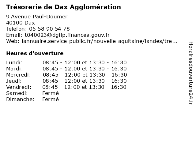 Termes de recherche pour Trésorerie de Dax Agglomération:de, dax, administration, service, services publics, trésorerie, agglomération |
