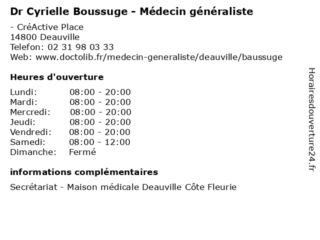 | Lundi | 08:00-20:00 |