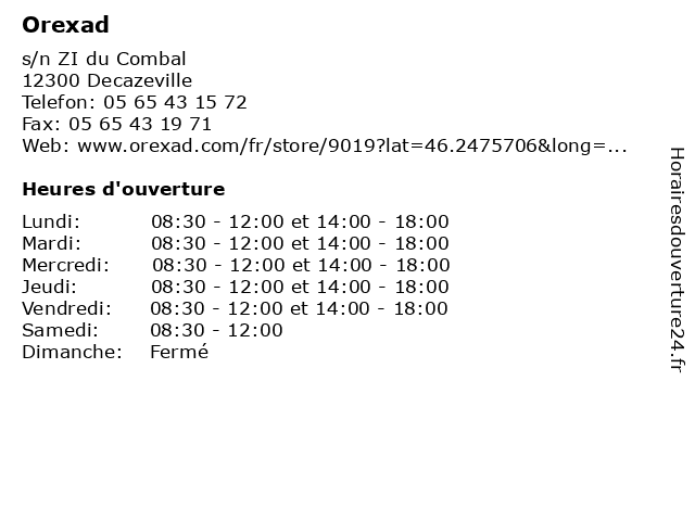 | Mardi | 08:30-12:00 et 14:00-18:00 |