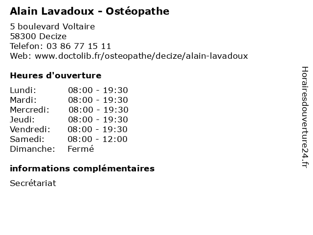 | Lundi | 08:00-19:30 |