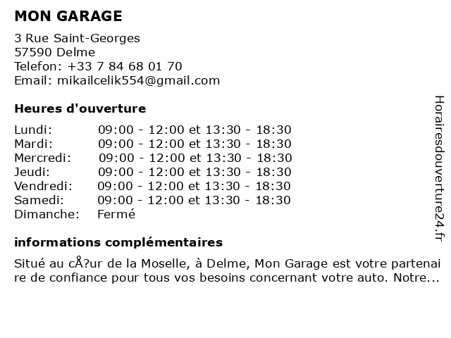 | Lundi | 09:00-12:00 et 13:30-18:30 |