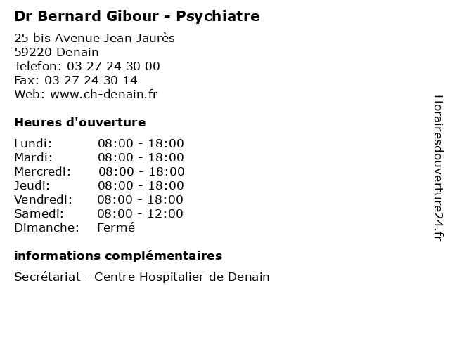 1 Dr Bernard Gibour - Psychiatre (Distance: 19,38 km) 4-8 rue de la Bibliothèque, 59163 Condé-sur-l'Escaut bernard, consultation, docteur, dr, gibour, med, médecin, médecine, psychiatre, traitement 2 Dr Bernard Egorine - Médecin généraliste (Distance: 3,03 km) 13 Avenue Julien Renard, 59282 Douchy-les-Mines bernard, docteur, dr, egorine, generaliste, généraliste, medical, médecin, soin 3 Dr Jean-Luc Decrock - Psychiatre (Distance: 8,36 km) 61 bis rue Joseph Bouliez, 59490 Somain consultation, decrock, docteur, dr, jean, luc, med, médecin, médecine, psychiatre, traitement 5 Duretz Victor Bernard (Distance: 9,92 km) 78 Rue Du Quesnoy, 59300 Valenciennes bernard, boucheries, duretz, poissonneries, victor 6 |