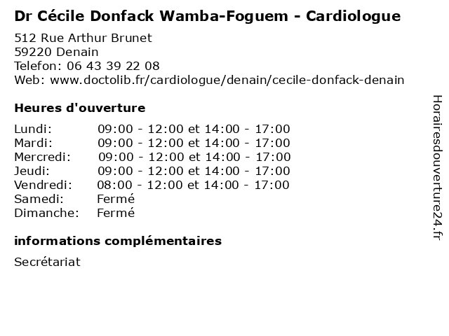 1 Dr Stéphane Przybylak - Cardiologue (Distance: 1,20 km) 25 bis Avenue Jean Jaurès, 59220 Denain cardiologue, consultation, docteur, dr, med, médecin, médecine, przybylak, stéphane, traitement 2 Dr Imen Ben Hadj - Cardiologue (Distance: 2,68 km) - Ruelle Blanqui, 59124 Escaudain ben, cardiologue, coeur, docteur, dr, hadj, imen, sante 3 Dr Kouroch Taghipour - Cardiologue (Distance: 8,58 km) 17 Rue Henri Barbusse, 59490 Somain autre, cardiologie, cardiologue, consultation, docteur, dr, kouroch, médecins, santé, taghipour 4 Dr Benaissa Agraou - Cardiologue (Distance: 9,41 km) 114 Avenue Desandrouin, 59300 Valenciennes agraou, benaissa, cardio, cardiologie, cardiologue, coeur, dr 5 Dr Stéphane Przybylak - Cardiologue (Distance: 9,41 km) 114 Avenue Desandrouin, 59300 Valenciennes cardio, cardiologie, cardiologue, coeur, dr, przybylak, stéphane 6 Dr Marie-Luce Scholliers - Cardiologue (Distance: 9,41 km) 114 Avenue Desandrouin, 59300 Valenciennes cardio, cardiologie, cardiologue, coeur, dr, luce, marie, scholliers |