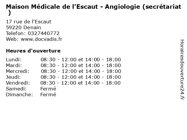 Termes de recherche pour Maison Médicale de l'Escaut - Angiologie (secrétariat ):de, médicale, maison, santé, secretariat, docteur, l'escaut, consultation, angiologie |