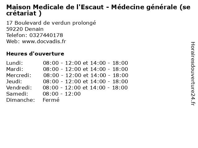 | Lundi | 08:00-12:00 et 14:00-18:00 |
