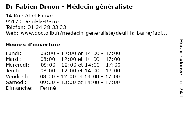 | Lundi | 08:00-12:00 et 14:00-17:00 |