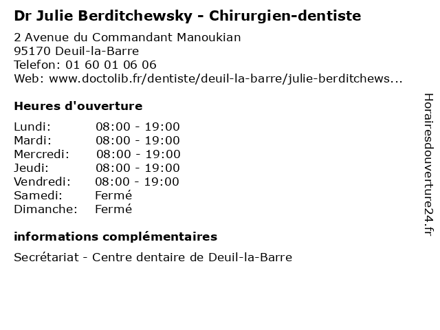 1 Dr Julie Berditchewsky - Chirurgien-dentiste (Distance: 7,08 km) 3 Avenue de la Redoute, 92600 Asnières-sur-Seine berditchewsky, chirurgien, consultation, dentiste, docteur, dr, julie, med, médecin, traitement 2 Dr Julie Berditchewsky - Chirurgien-dentiste (Distance: 14,57 km) 238 b Rue du Faubourg Saint-Antoine, 75012 Paris berditchewsky, chirurgien, dentaire, dentiste, docteur, dr, julie, orthodontiste 3 Julie Bey - Ergothérapeute (Distance: 2,62 km) 12 Avenue du 8 Mai 1945, 95200 Sarcelles bey, ergo, ergotherapeute, ergothérapeute, julie, medecin, soin 4 Julie Chea - Masseur-kinésithérapeute (Distance: 3,00 km) 12 Rue du Général Julien, 93800 Épinay-sur-Seine chea, consultation, docteur, julie, kinésithérapeute, masseur, med, médecin, médecine, traitement 5 Julie Poulena - Ostéopathe (Distance: 3,01 km) 6 Allée de Longchamp, 95160 Montmorency julie, ostéo, ostéopathe, ostéopathes, poulena, soins 6 Dr Julie Roger - Médecin généraliste (Distance: 4,66 km) 196 Boulevard Gallieni, 92390 Villeneuve-la-Garenne dr, généraliste, julie, médecin, médecine, médical, pharmaceutique, roger, traitement |