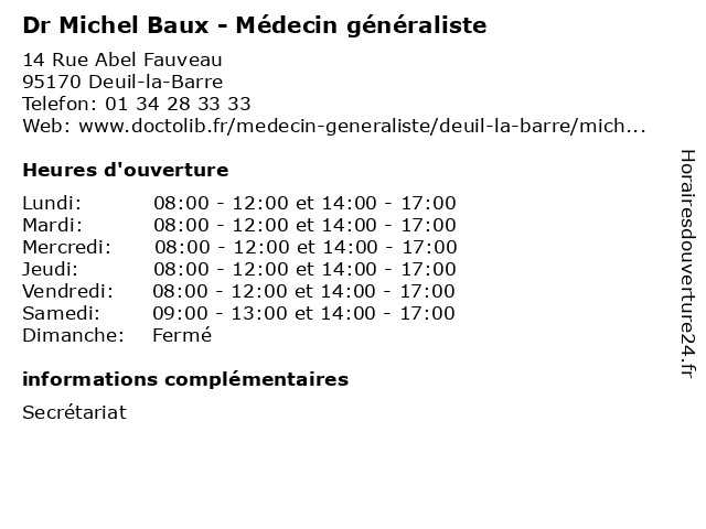 | Lundi | 08:00-12:00 et 14:00-17:00 |