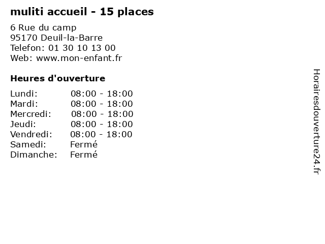 1 muliti accueil - 5 places (Distance: 0,00 km) 6 Rue du camp, 95170 Deuil-la-Barre accueil, caregivers houses, child care, family home, home care, kindergartens, micro-nurseries, muliti, parental home, places 2 Yespark, location de parking au mois - 15 rue eugène pottier - Saint-Denis (Distance: 2,58 km) 15 Rue Eugène Pottier, 93200 Saint-Denis 15, au, de, denis, eugène, location, mois, parking, pottier, rue, saint, yespark 3 Yespark, location de parking au mois - 15 rue eugène pottier - Saint-Denis (Distance: 2,58 km) 15 Rue Eugène Pottier, 93200 Saint-Denis 15, au, de, denis, eugène, location, mois, parking, pottier, rue, saint, yespark 4 Cimetière de Passy - Du 06 novembre 2016 au 15 mars 2017 (Distance: 11,96 km) 2 Rue du Commandant-Schloesing, 75016 Paris 06, 15, 2016, 2017, arbre, au, cimetière, de, du, espace vert, forêt, jardin, loisirs, mars, nature, novembre, parc, passy, prairie, square 5 Château De Maison -- Du 2 Janvier Au 15 Mai (Distance: 13,11 km) 2 Avenue Carnot, 78600 Maisons-Laffitte 15, ancien, art, au, chateau, château, de, du, janvier, mai, maison, musee 6 |