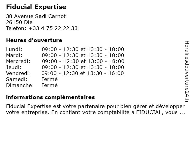 1 2 Fiducial Expertise (Distance: 33,44 km) . Grandchamps, 44601 Saint-Nazaire droit, enterprise, expert-comptable, expertise, fiducial, finance, services 3 Fiducial Expertise (Distance: 40,60 km) 2 Boulevard Marx Dormoy, 26100 Romans-sur-Isère expertise, fiducial 6 Fiducial Expertise (Distance: 46,54 km) Place du 4 Septembre, 07800 La Voulte-sur-Rhône expertise, fiducial |