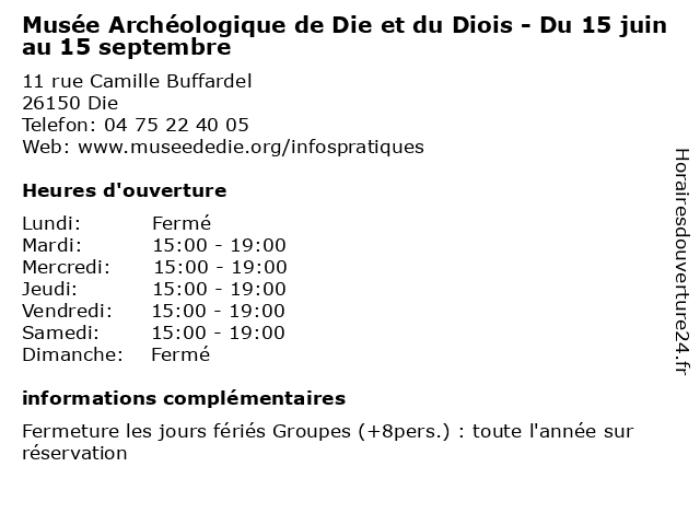 Termes de recherche pour Musée Archéologique de Die et du Diois - Du 15 juin au 15 septembre:du, et, de, die, au, musée, 15, diois, septembre, juin, exposition, archéologique, visite |