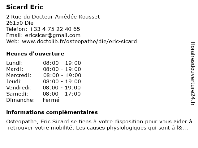 1 Sicard Pauline (Distance: 53,33 km) 1 Avenue du 45e Régiment de Transmissions, 26200 Montélimar pauline, sicard 2 Assurances Sicard (Distance: 53,33 km) 1 Avenue du 45e Régiment de Transmissions, 26200 Montélimar assurances, sicard 3 Auberge Le Garde-Manger (Distance: 18,02 km) Le Village, 26340 La Chaudiere auberge, dupuy, eric, garde, hote, invite, manger, restaurants 4 Eric Leturgie Coiffure (Distance: 28,44 km) 1 Avenue Félix Rosier, 26400 Crest coiffeur, coiffure, eric, leturgie, salon 5 Bijouterie Eric Duny (Distance: 42,34 km) - Avenue de Romans, 26000 Valence accessoires, bijouterie, bijoux, duny, eric 6 Eric Leturgie Coiffure (Distance: 42,35 km) 1 Route de romans, 26000 Valence coiffeur, coiffure, eric, eric leturgie, leturgie, valence |