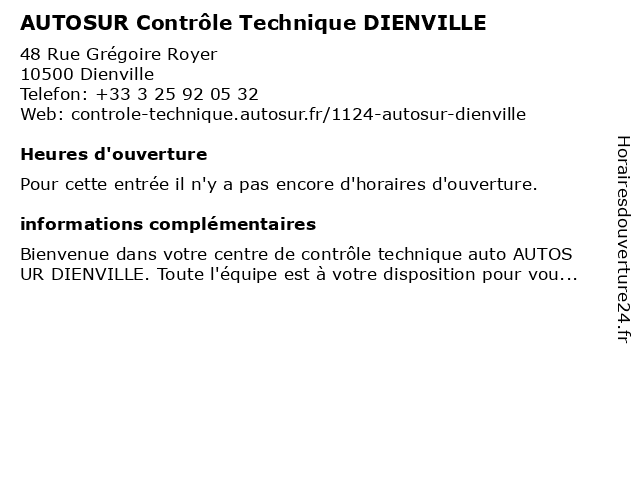 | Appeler AUTOSUR Contrôle Technique DIENVILLE | |