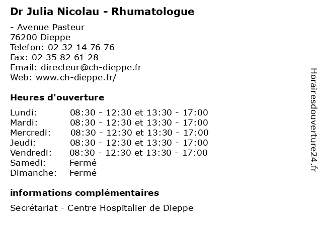 | Jeudi | 08:30-12:30 et 13:30-17:00 |