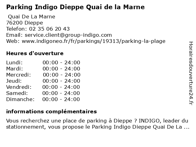 1 Onepark / Quai de la Marne Parking (Distance: 0,03 km) - Quai de la Marne, 76200 Dieppe de, la, marne, onepark, parking, quai, services 4 Onepark / Quai du Hable Parking (Distance: 0,18 km) - Quai du Hable, 76200 Dieppe du, hable, onepark, parking, quai, services 6 Le New York Quai (Distance: 0,32 km) 95 Quai Henri IV, 76200 Dieppe bar, bistrot, brasserie, café, le, new, quai, restaurant, restauration, york |