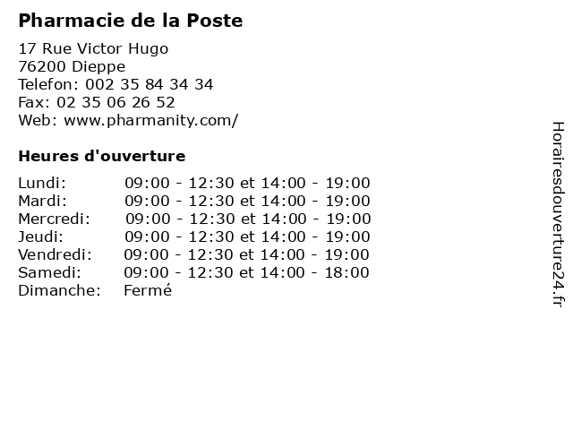 | Lundi | 09:00-12:30 et 14:00-19:00 |
