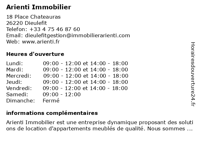 1 Arienti Immobilier (Distance: 14,08 km) 535 Boulevard de Provence, 26450 Cléon-d'Andran arienti, immobilier 3 Arienti Immobilier La Bégude de Mazenc (Distance: 10,43 km) 165 Avenue Aristide Briand, 26160 La Bégude-de-Mazenc arienti, bégude, de, immobilier, la, mazenc 4 Arienti Office Immobilier (Distance: 11,14 km) 29 Rue des Petits Remparts, 26770 Taulignan arienti, immobilier, office 5 Pizz ' Arienti (Distance: 16,54 km) Pizz Arienti, 26400 Crest arienti, pizz, restaurants, rudi, wendling 6 |