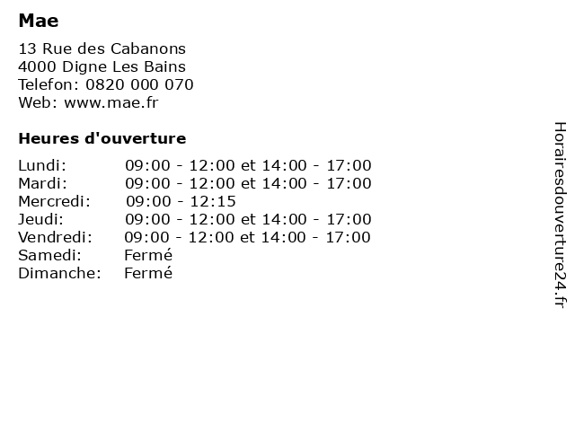 | Mardi | 09:00-12:00 et 14:00-17:00 |