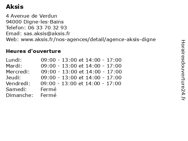 | Mardi | 09:00-13:00 et 14:00-17:00 |