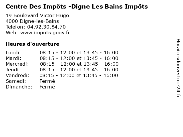 Termes de recherche pour Centre Des Impôts -Digne Les Bains Impôts:les, bains, des, services, centre, digne, impôts, publics |