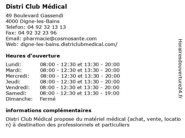 | Lundi | 08:00-12:30 et 13:30-20:00 |