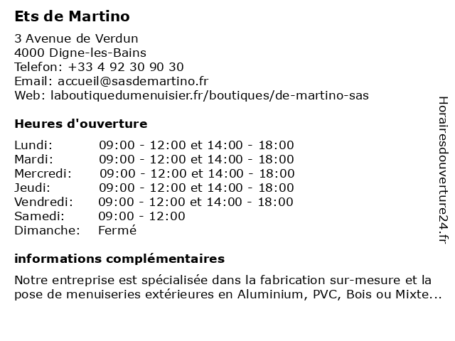 | Lundi | 09:00-12:00 et 14:00-18:00 |